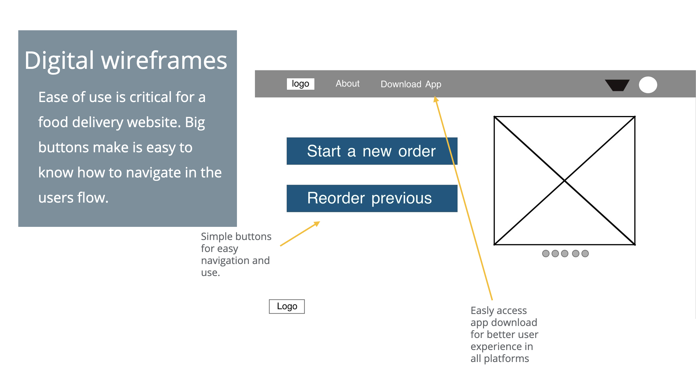 The user journey focuses on ease of use. The web version makes a clear area to download the app for a mobile phone for a better experience.