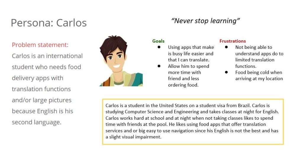 Getting feedback from designs from a diverse population helps to make the designs better in every iteration. My first idea for the app very was limited text and big pictures. I learned that adding text can help lead to a better understanding and flow with the app.