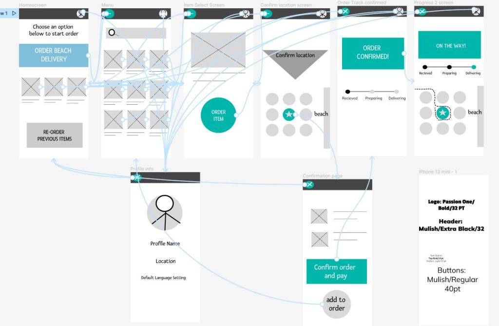 This prototype shows a completed user flow of the pool/beachside delivery app.